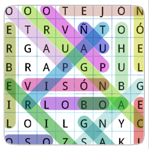 The board fits the screen size and..... you can already play.Find the hidden words to find and are marked with different colors.
